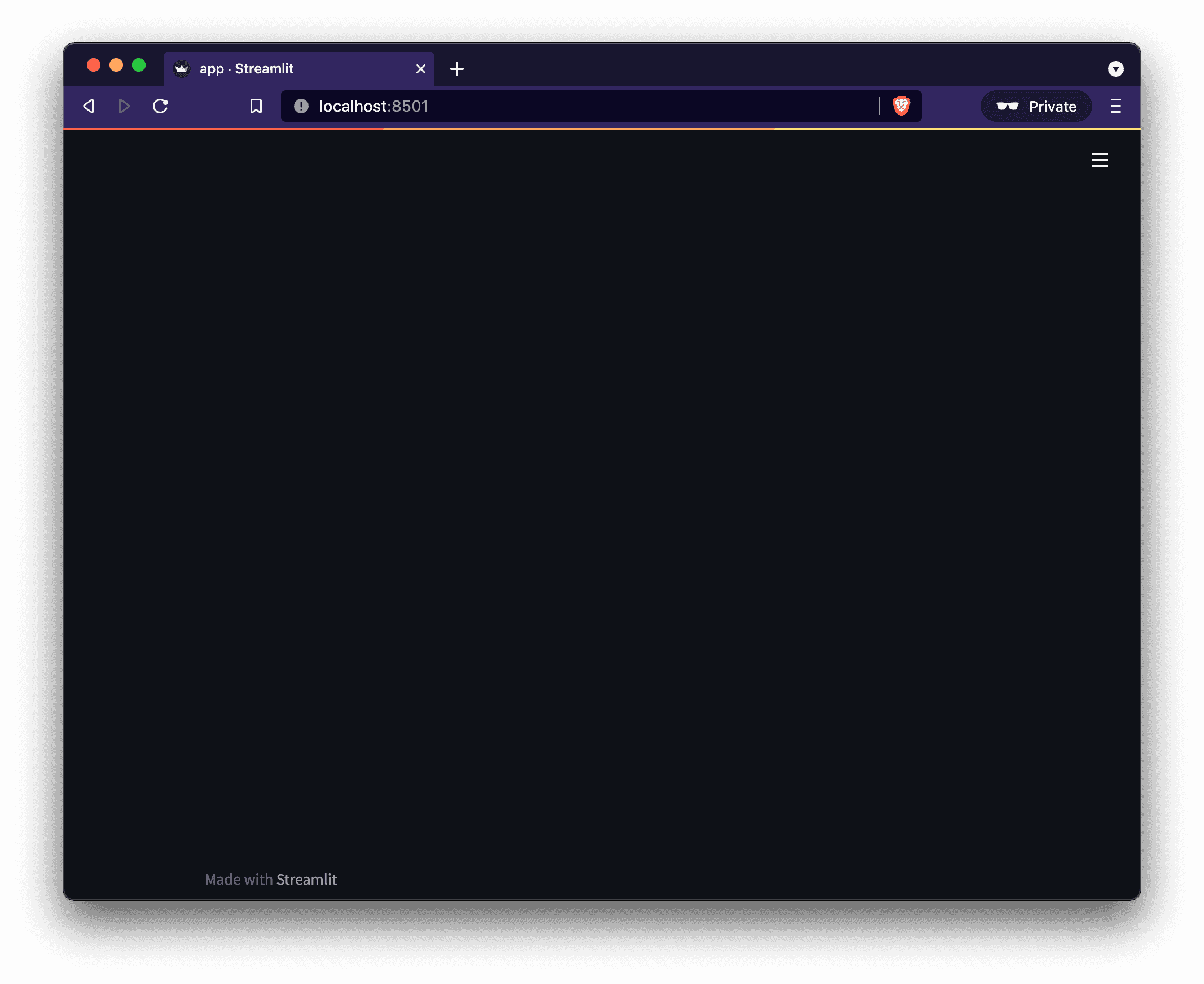 After a while, the Streamlit server process will boot up. Then access http://localhost:8501 to see the page like below (or it will automatically open in the browser by default). The screenshot here is in dark-mode, and if you are using light-mode, it looks different.